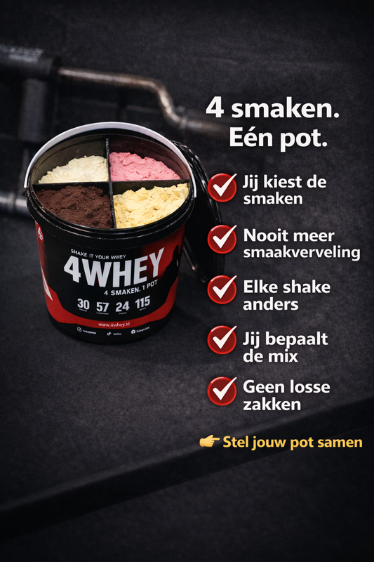 Bij 4WHEY krijg je dus meer variatie, meer plezier en meer flexibiliteit — zonder dat je meer betaalt.