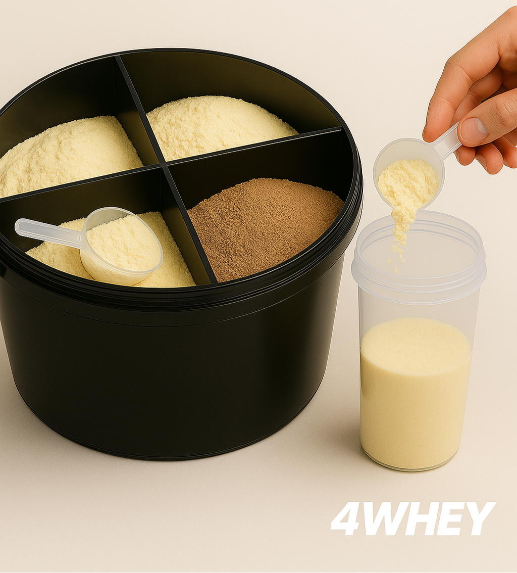 🥄 Whey protein boring? Not with us. 4WHEY lets you mix it yourself – with a reusable jar.